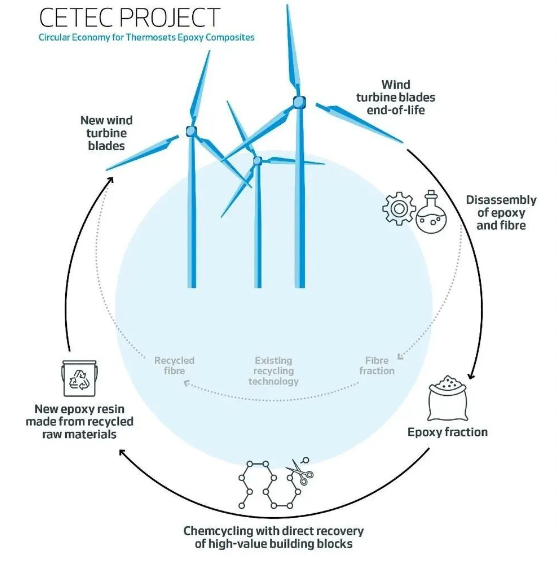 一直以來,風(fēng)機葉片都是由環(huán)氧樹脂復(fù)合材料制成的。隨著第一批風(fēng)電機組運行壽命即將結(jié)束,歐洲風(fēng)能協(xié)會WindEurope預(yù)計,從2025年起,每年將有約25000噸葉片退役。